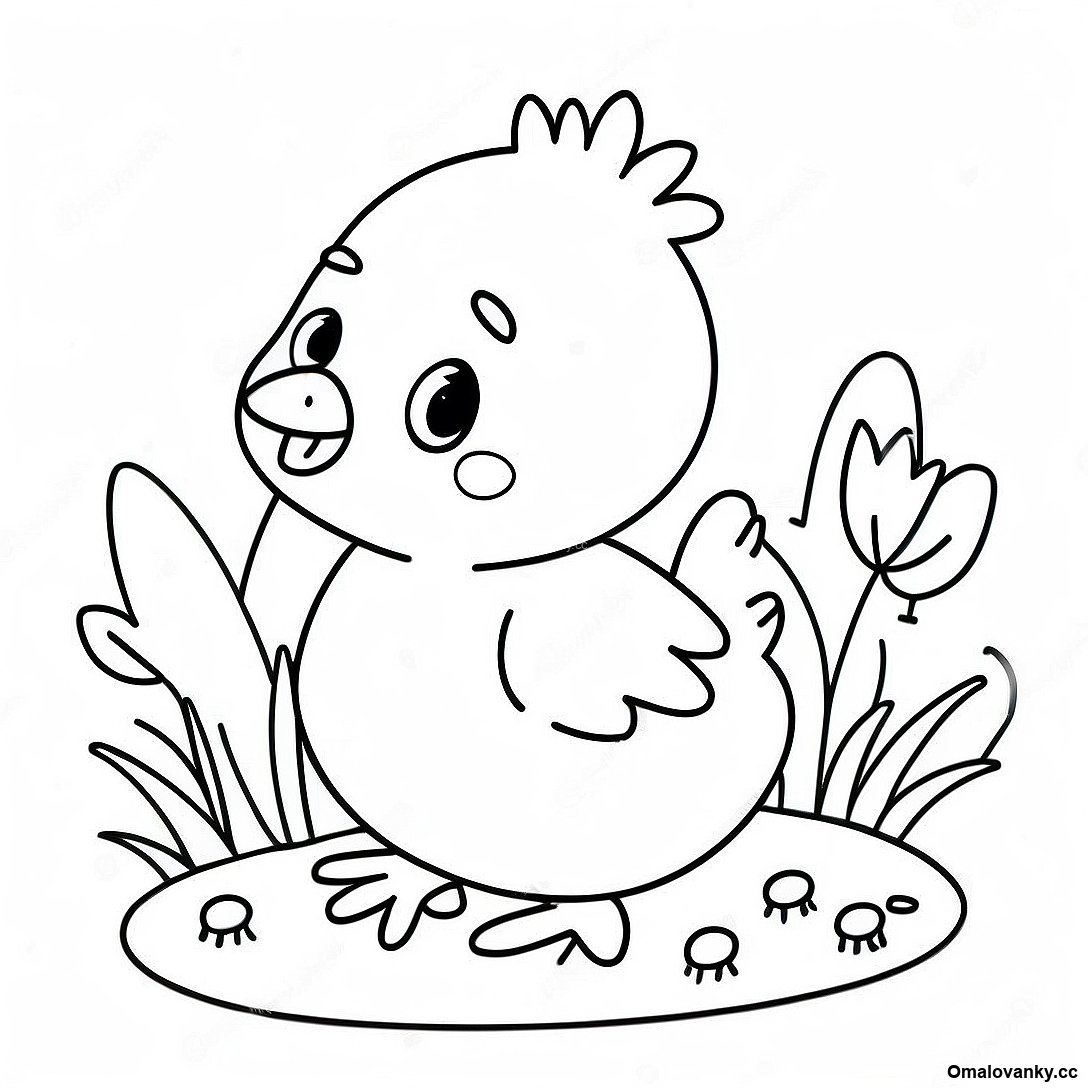 Stáhněte si tisknutelné PDF omalovánky Šťastné Velikonoční Kuřátko Na Omalovánce