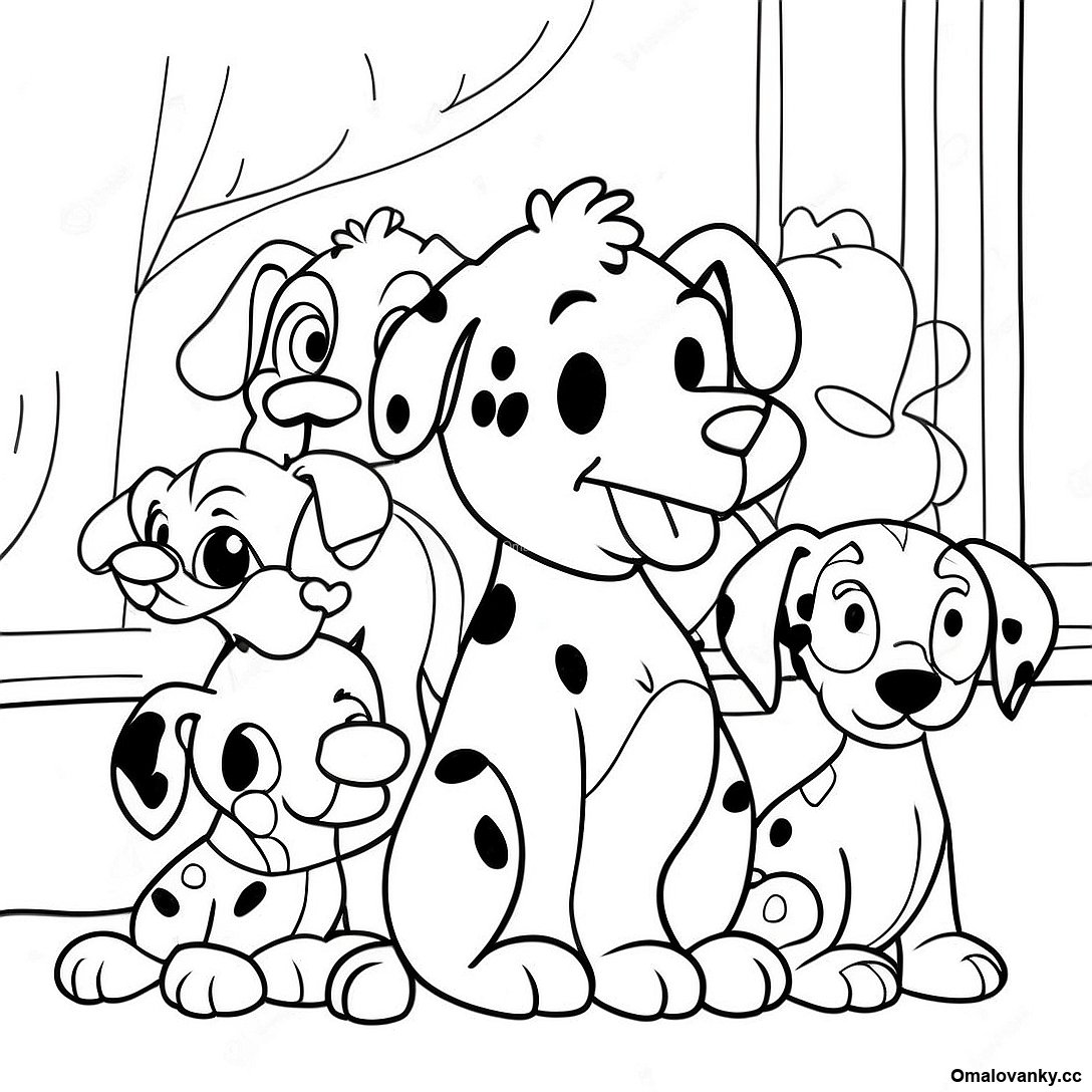 Stáhněte si tisknutelné PDF omalovánky Štěňata 101 Dalmatinů Přátelé Omalovánka