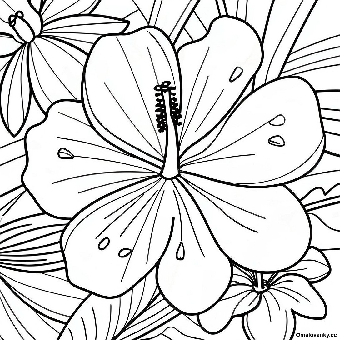 Tropicky Hibiskus Omalovanka